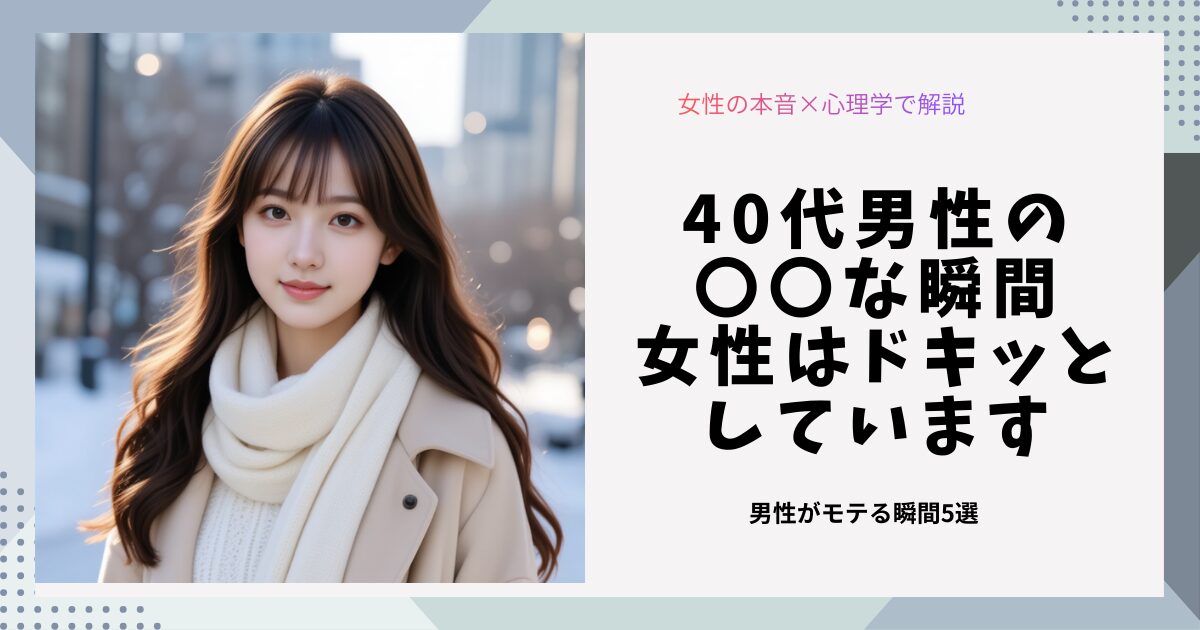 女性として正直に言うと、40代男性には若い男性にはない独特の魅力があります。そして、その魅力が光る「ある瞬間」に、女性は思わずドキッとしてしまうんです。