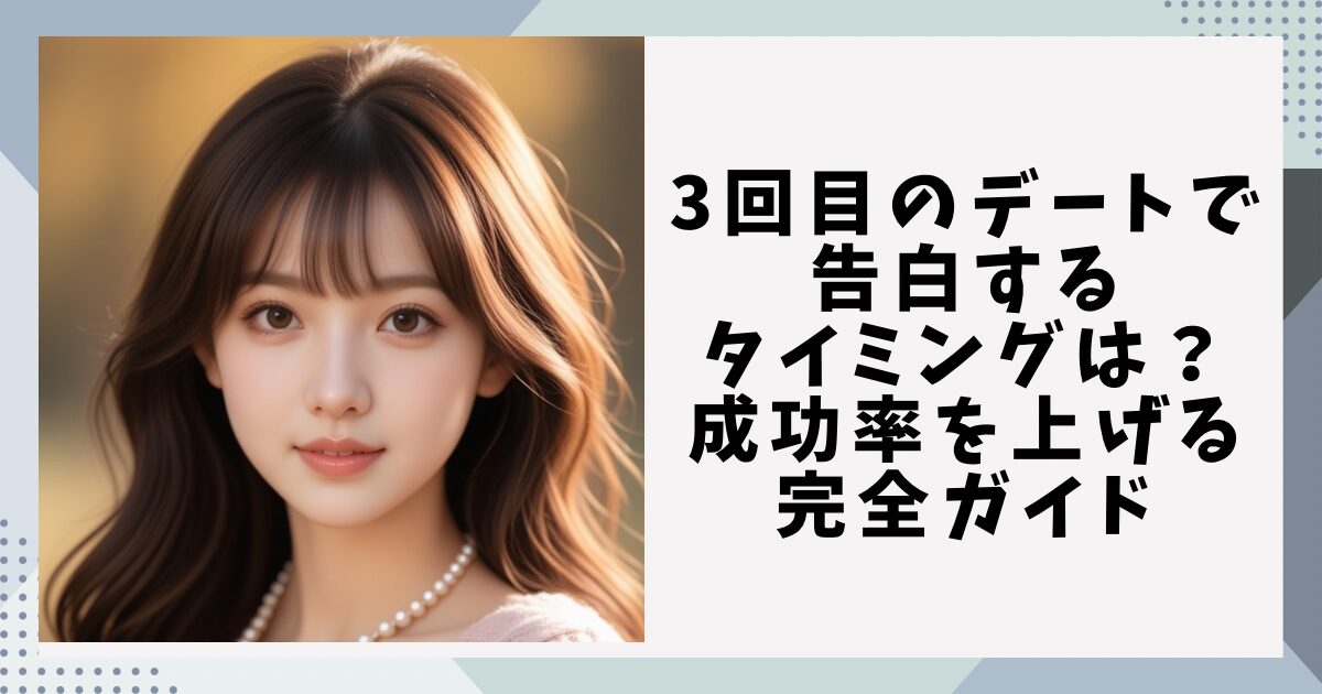 実は、3回目のデートって告白にめっちゃいいタイミングなんだよ!早すぎず遅すぎず、お互いのことを知り合えて、まだドキドキ感も残ってる…まさに絶妙なタイミングなの。